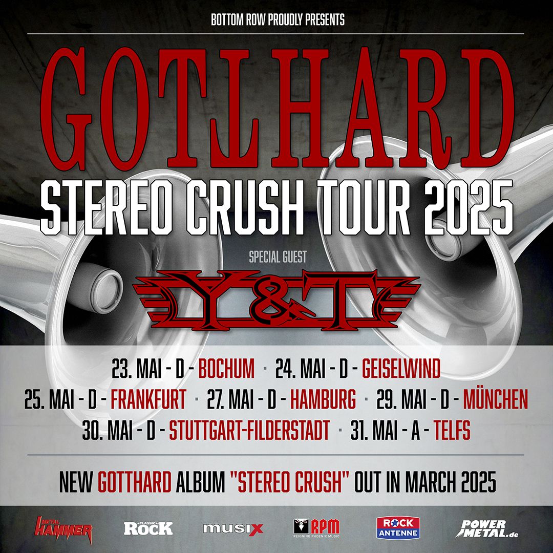 Produced and mixed by long-time partner Charlie Bauerfeind, who's known for his work with the likes of HELLOWEEN and BLIND GUARDIAN, alongside founding member Leo Leoni at Yellowhouse Studio, and mastered by Sascha "Busy" Bühren (TrueBusyness), "Stereo Crush" promises to set new standards which will additionally come to shine on the band's forthcoming touring cycle: GOTTHARD will open it with a tour in May, accompanied by special guests Y&T, before the quintet head to select festivals as well as the stages of their home country at the end of 2025. The band's current live schedule and ticket info can be found below!