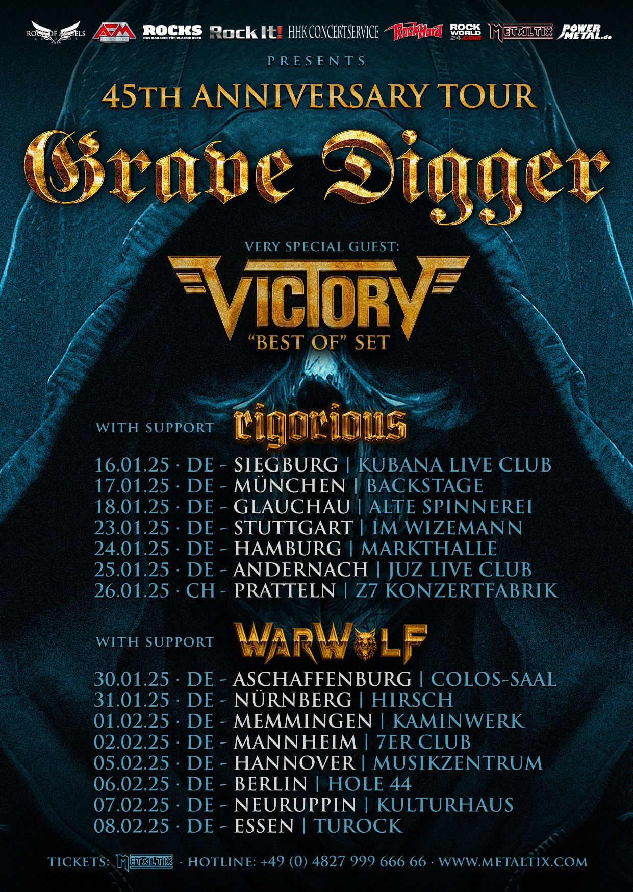 In the year 2025 the German metal institution celebrates its 45th anniversary. Founded in 1980 in Gladbeck/Germany, they moved out to conquer the world. Who would have thought that 45 years later Grave Digger would be one of the most important, consistent and influential metal bands from Germany. With the release of the album "Heavy Metal Breakdown" in 1984, an unprecedented career began that will find its logical continuation with their new album “Bone Collector”, on January 17, 2025.